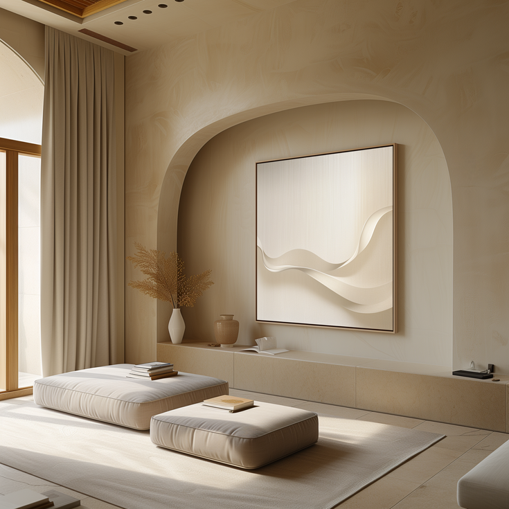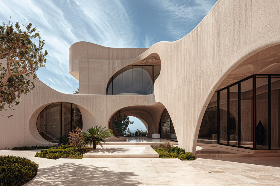 The inspiration also draws from traditional Middle Eastern architecture, particularly the use of arches and vaulted ceilings, which are reinterpreted in a modern context to create a space that feels both grounded in heritage and forward-looking. The villa's design aims to evoke the peace of the desert landscape, where light and shadow play across textured surfaces, mimicking the dunes' gentle curves and fluid patterns.
