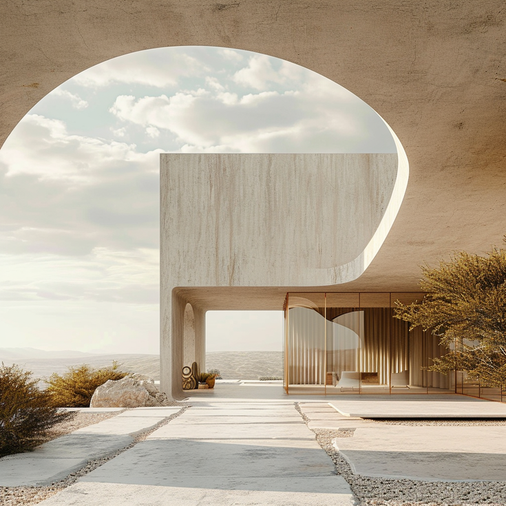 The design concept is rooted in creating a seamless dialogue between architecture and the natural desert environment. Inspired by the fluid, ever-changing forms of the sandy dunes and the soft, warm hues of the desert at dawn and dusk, the design embodies a sense of tranquillity and timeless beauty.