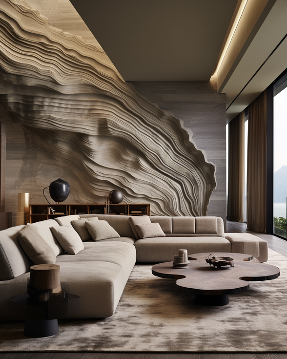 The interiors blend modern minimalism with natural materials, featuring rich wood textures and sleek stone surfaces that exude warmth and sophistication. Each space within the villa is meticulously designed to balance comfort and style, creating an elegant, artful, and unique spatial experience. The design also integrates cutting-edge smart home technologies, providing the pinnacle of luxury living.